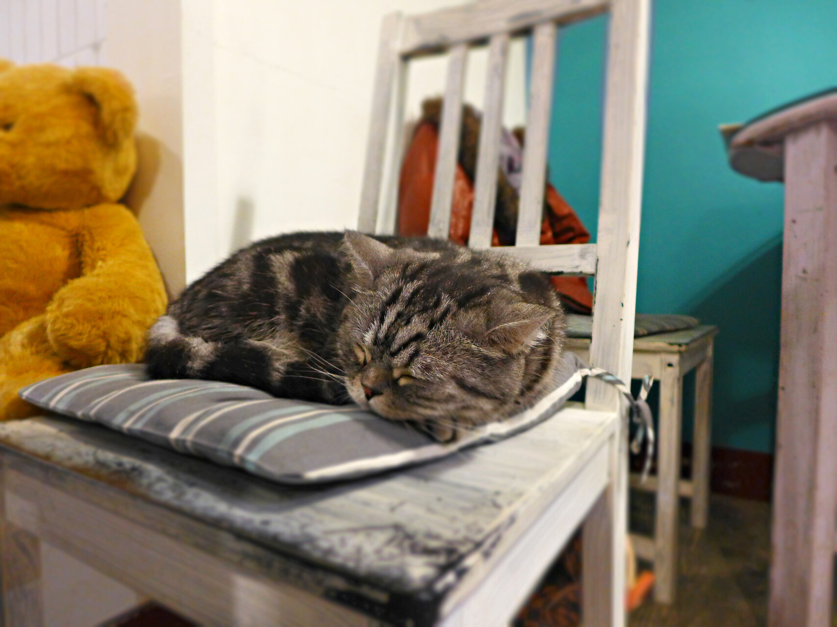 有時慵懶坐在椅墊上,有時若有所思望向窗外